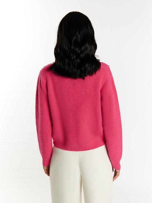 Элегантный кардиган Faina с жемчугом и большими мерцающими жемчужными пуговицами создает гламурную вязку, которая будет сопровождать вас днем и ночью. Мягкая пряжа связана вафельным узором и имеет отделку ребристыми манжетами по низу, горловине и рукавам.