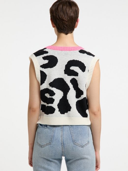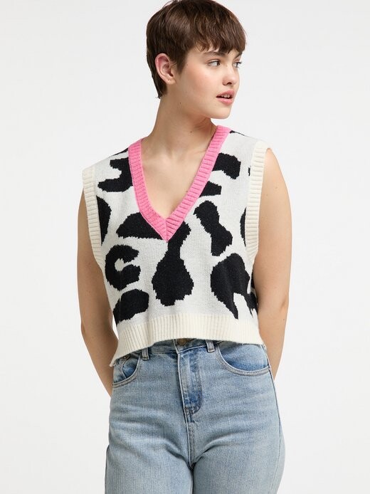 Жилет-свитер празднует свое возвращение! Поэтому мы выбираем модель от myMo, которая выполнена с эффектным узором интарсия. Мягкая смесь пряжи также подчеркивает контрастный глубокий V-образный вырез. Короткий укороченный крой стильно дополняет жилет-свитер. В сочетании с блузкой под ним этот стиль идеален.