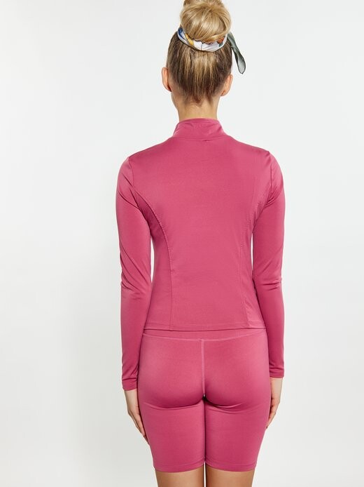 Представляем элегантную и универсальную куртку с длинными рукавами, высоким воротником и центральной молнией спереди для удобства ношения. Эта спортивная одежда с контурными швами на груди имеет облегающий силуэт, одновременно стильный и функциональный. Прямые рукава создают классический образ, а гладкий эластичный материал обеспечивает комфорт и гибкость.