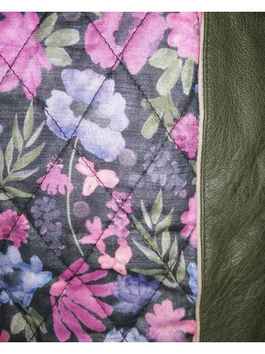 Модная женская кожаная куртка из мягкой овчины от бренда MUSTANG. Пришитые по диагонали боковые карманы на молнии и красивый воротник рубашки с кнопками делают эту куртку особенной изюминкой. Посадку куртки можно регулировать с помощью молний на концах рукавов и пряжек по бокам внизу. Куртка имеет очень красивые декоративные швы и оснащена двумя внутренними карманами. Подкладка с цветочным узором придает вам особый шарм.