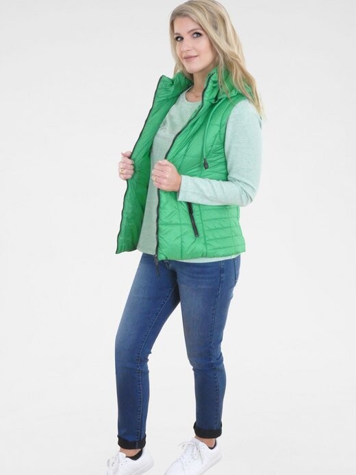 Вы просто не сможете пройти мимо этой впечатляющей зелени! Стеганый жилет от NAVIGAZIONE представлен в насыщенном сигнальном цвете. Благодаря съемному капюшону жилет можно отрегулировать по вашему желанию. Детали под кожу на молниях создают современный контраст. Выразительный образ отлично дополнит ваш образ!
