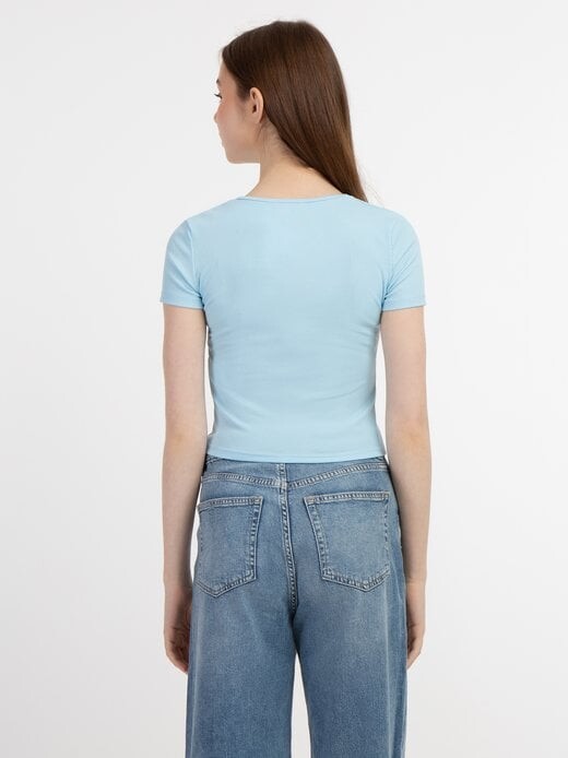 Футболка myMo изготовлена из мягкого трикотажа в рубчик и плотно облегает фигуру. Вдохновленный яркими красками лета, он был сделан в Италии. Модный дизайн дополняет модный вырез.