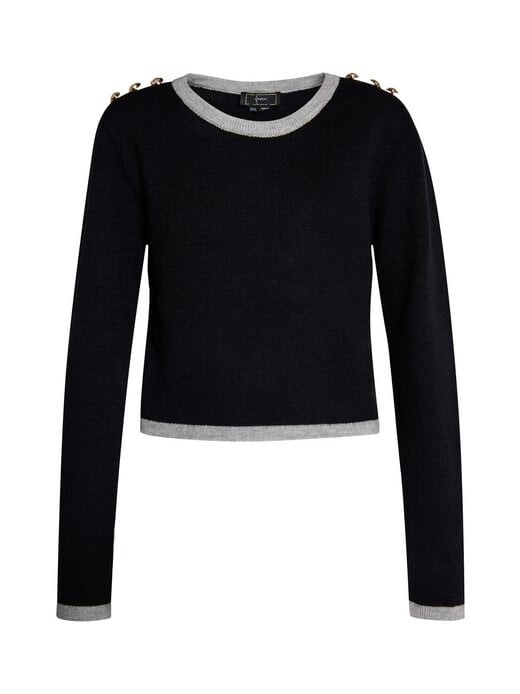 Этот свитер от Faina элегантный, классический и вневременной. Элегантное изделие мгновенно украсит любой образ. Выполненные из мягкой смесовой пряжи, контрастные вязаные манжеты в рубчик и золотистые пуговицы с тиснением придают слегка укороченной модели гламурный характер.