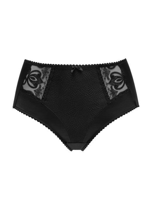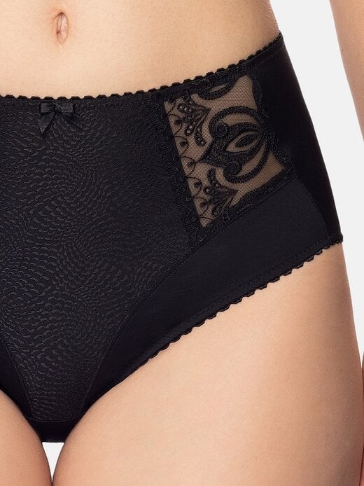 Трусики с высокой талией из серии Serenada со слегка блестящей жаккардовой тканью спереди. Спинка изготовлена из эластичного гладкого материала, который идеально адаптируется к телу. Детали из прозрачного кружева завершают элегантный образ.