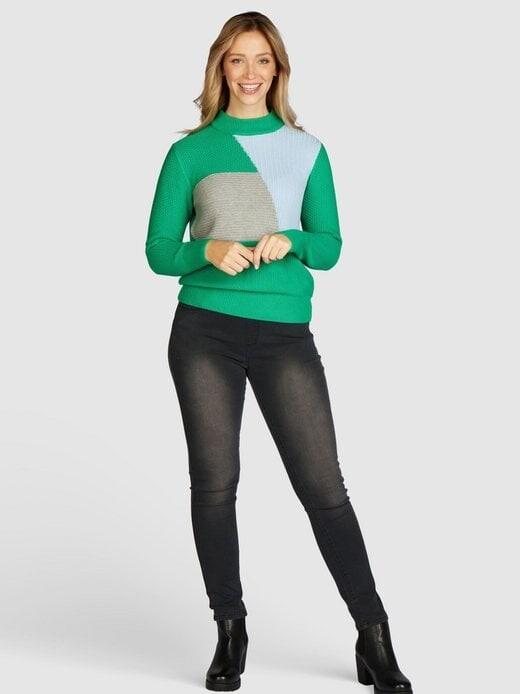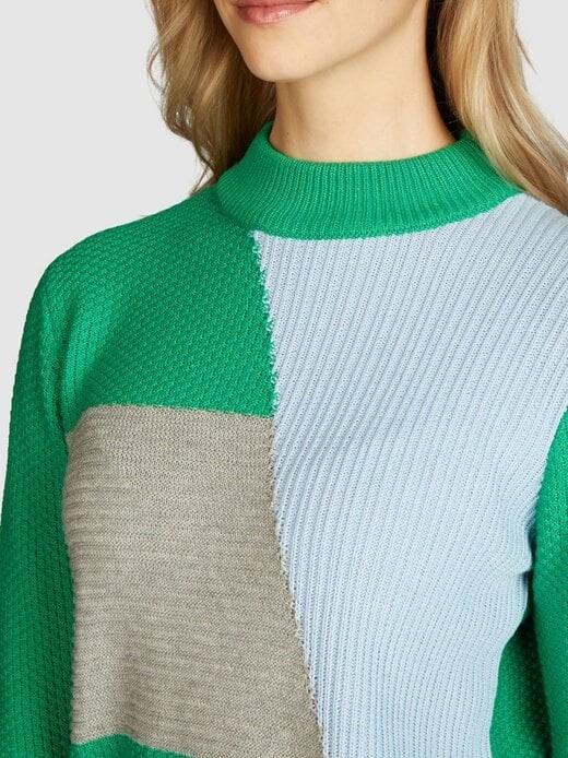 Кандидат в ваш новый фаворит: вязаный свитер от NAVIGAZIONE! Широкий воротник-стойка обеспечивает тепло, а широкий пояс обеспечивает идеальную посадку. Сочетание жемчужной и гладкой строчки выглядит модно. Сочетание темно-зеленого и свежего синего/серого цветов позволит вам заявить о себе в моде!