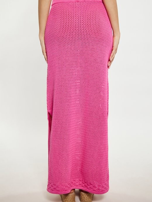 Представляем нашу потрясающую женскую юбку с завышенной талией, выполненную из нежного трикотажа и украшенную замысловатым ажурным узором, создающим полупрозрачный вид. Облегающий силуэт слегка расклешен к низу. Прочный и эластичный пояс обеспечивает удобную и надежную посадку, а декоративный край придает этой незаменимой вещи уникальный вид.