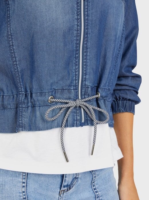 С курткой от NAVIGAZIONE вы получите абсолютный тренд! Он изготовлен из лиоцелла, поэтому создает ощущение легкости и воздушности в верхней части тела. Благодаря материалу, который практически не мнется, морщины остались в прошлом. Он впечатляет множеством особенностей, таких как симпатичный воротник-стойка и два накладных нагрудных кармана. На концах рукавов имеются манжеты, а на талии современная кулиска. В коротком крое вы будете актуальны летом!