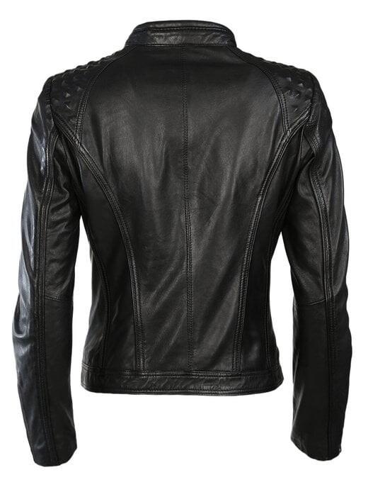 Эта куртка с заклепками в области плеч в байкерском стиле притягивает взгляды. Короткий воротник-стойка и молнии на концах рукавов подчеркивают байкерский образ.