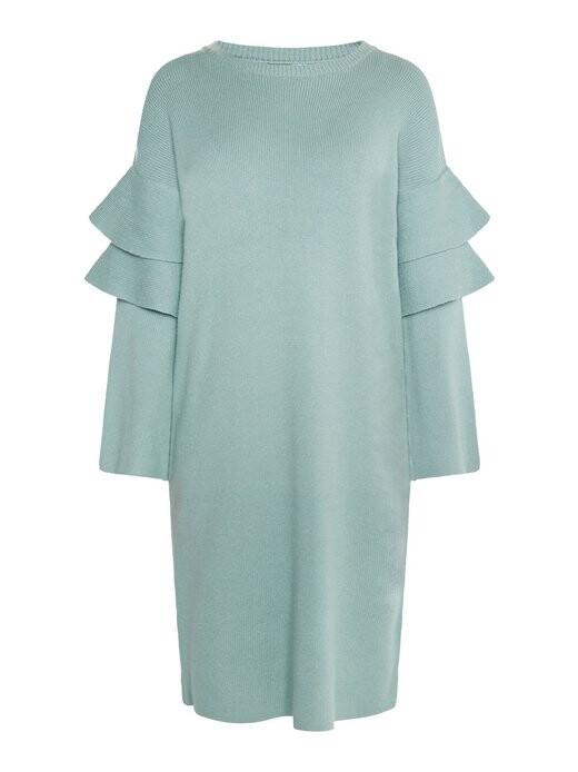 Мягкое трикотажное платье от уши WHITE LABEL имеет прямой и свободный крой. Выполненный из мягкой вискозной пряжи, минималистский стиль приобретает захватывающий вид благодаря колоколообразным воланам на рукавах.