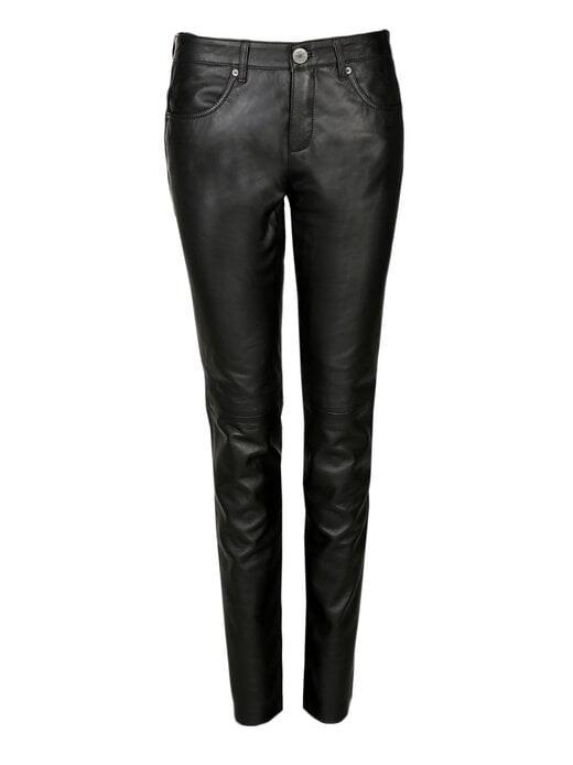 Классические пятикарманные брюки из мягкой кожи от JCC с застежкой на пуговицы и прямым кроем. Эти приятные кожаные брюки с удобными карманами одновременно элегантны и удобны.