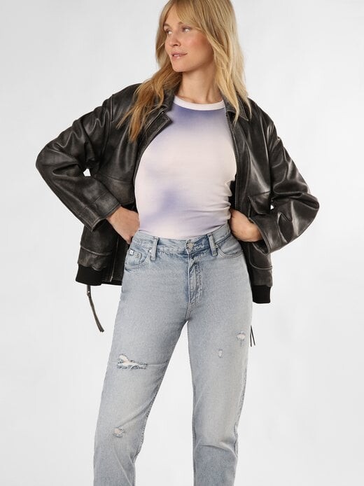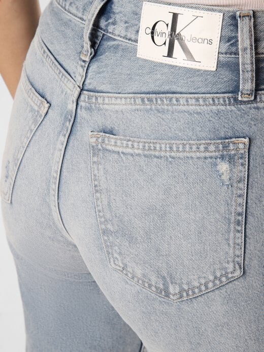 Выстиранные эффекты, использованные акценты и открытый нижний край придают джинсам Calvin Klein Jeans современный вид.