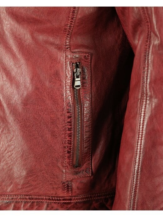 Куртка имеет красивый воротник-стойку на молнии и кнопках. Он также имеет два встроенных боковых кармана, которые обеспечивают приятный комфорт. Эта кожаная куртка имеет молнию и предлагает множество возможных комбинаций. Визуально привлекательная набивка на плечах и концах рукавов, а также нагрудные карманы на молнии придают этой куртке необыкновенный характер.