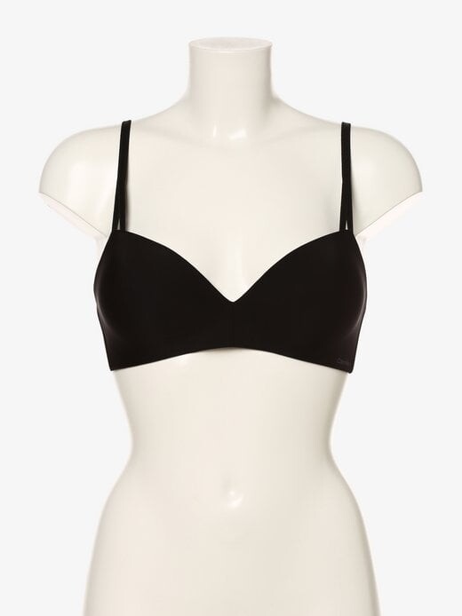 Чашечки бюстгальтера Calvin Klein бесшовной формы не бросаются в глаза под обтягивающей одеждой и благодаря встроенным подушечкам создают красивое декольте.