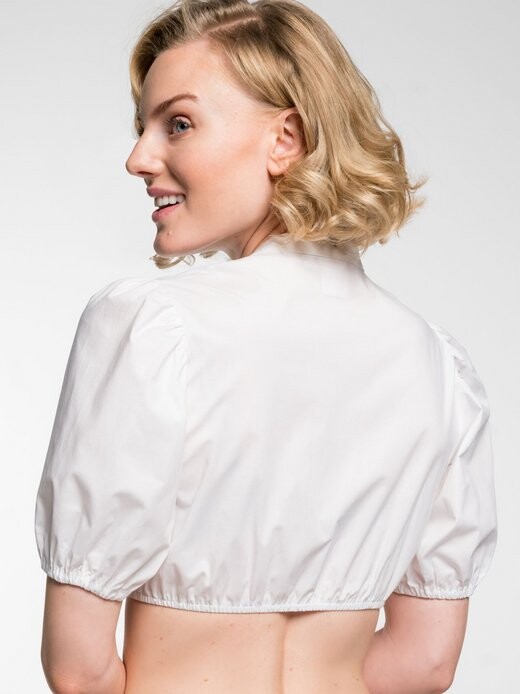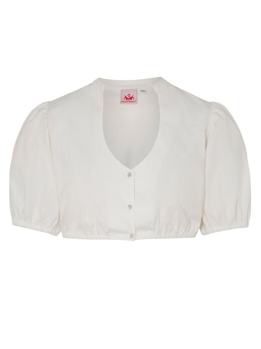 Эта короткая блузка в дирндле придаст вашему образу особую изюминку. Благодаря пышным рукавам средней длины в сочетании с шикарным V-образным вырезом с помощью этой универсальной блузки можно расставить стильные акценты. Это прекрасное дополнение к традиционным костюмам и повседневным нарядам, незаменимое в каждом гардеробе.