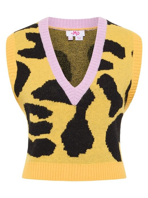 Жилет-свитер празднует свое возвращение! Поэтому мы выбираем модель от myMo, которая выполнена с эффектным узором интарсия. Мягкая смесь пряжи также подчеркивает контрастный глубокий V-образный вырез. Короткий укороченный крой стильно дополняет жилет-свитер. В сочетании с блузкой под ним этот стиль идеален.