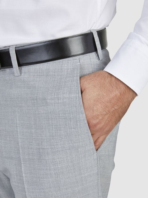В сочетании с подходящим жакетом эти костюмные брюки от HECHTER PARIS станут новой деталью вашего офисного или праздничного гардероба. Брюки MODERN FIT выполнены из рваного твила. Высококачественный материал с добавлением шерсти и эластичного материала приятно мягок и впечатляет идеальной посадкой и свободой движений. Элегантные брюки на ширину стопы 36 см.