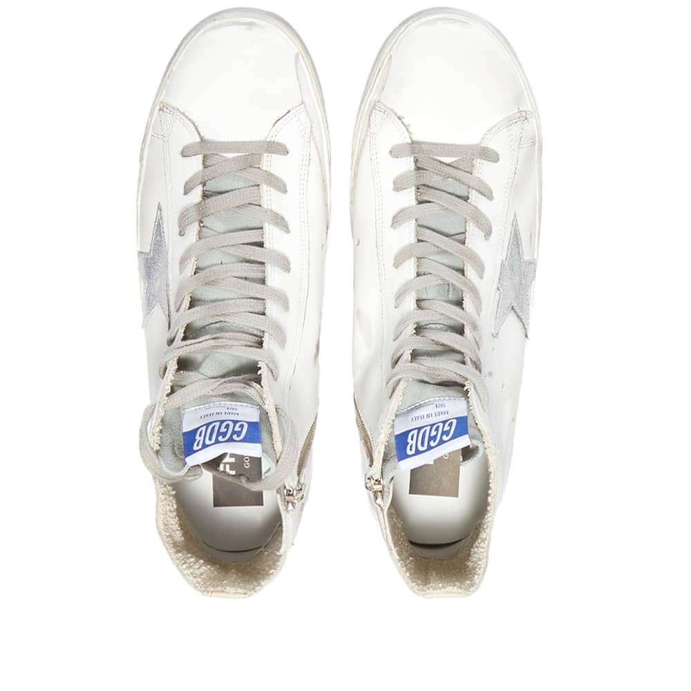 Кроссовки Francy от Golden Goose могут выглядеть как винтажные баскетбольные кроссовки, но в этом и заключается их шарм. Эта пара в белом и серебряном цветах потерта и поцарапана, чтобы выглядеть так, будто они провели несколько лет на кортах. Однако под всем этим скрывается премиальная модель, в которой используются итальянская кожа и замша.
