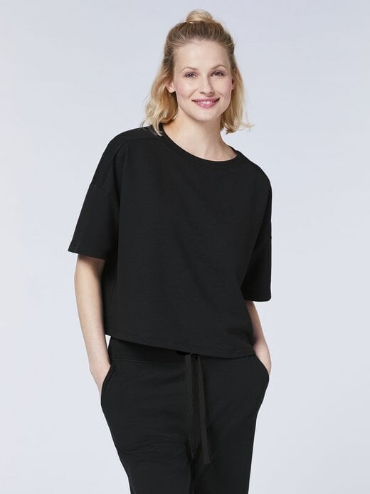 Круглый вырез и низко посаженные рукава «летучая мышь»