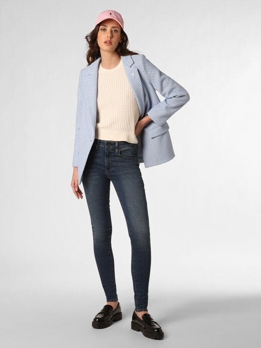 Стиль на все случаи жизни: джинсы скинни 721 от Levi's с высокой посадкой, потертостями и предлагаемыми бакенбардами.