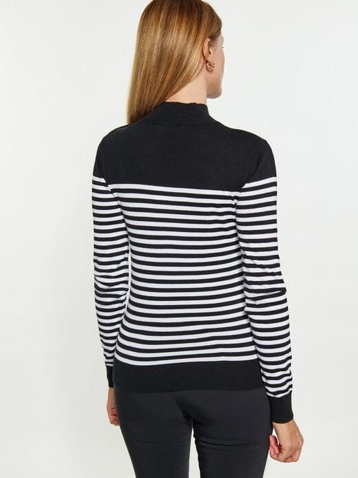 Этот высококачественный свитер идеально подходит для тех, кто ищет классический образ с оттенком изысканности. Полосатый узор и длинные рукава делают эту модель вечным фаворитом. Высокий воротник придает свитеру элегантный вид и согревает в холодные дни. Незаменимый предмет гардероба для любого стильного гардероба.