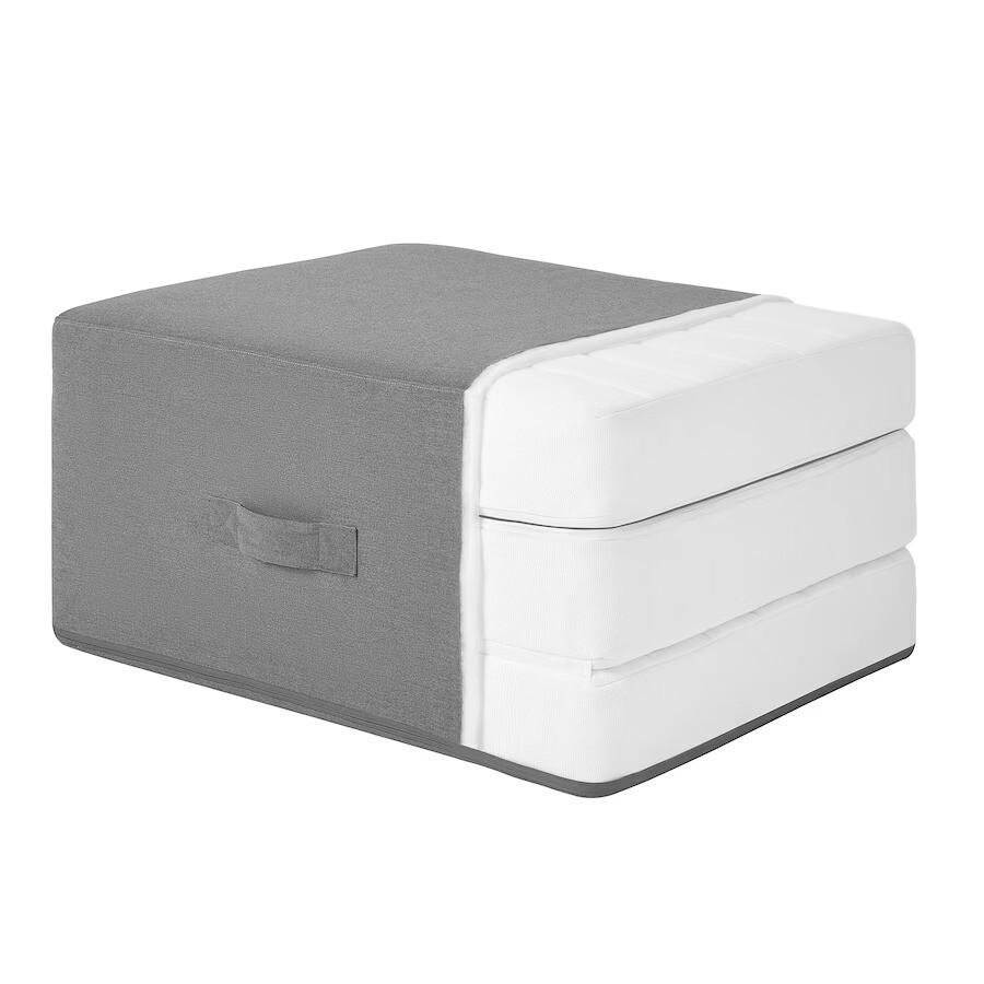 Этот пуфик идеально подходит в качестве дополнительного сиденья или подставки для ног рядом с диваном. Ее можно легко превратить в удобную гостевую кровать с карманными пружинами и слоем мягкого пенопласта, обеспечивающим поддержку.