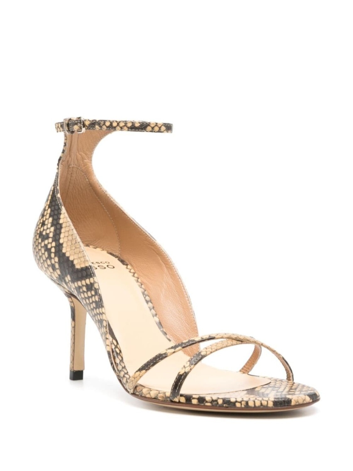 Босоножки Francesco Russo 75мм из кожи с эффектом змеиной кожи, бежевый