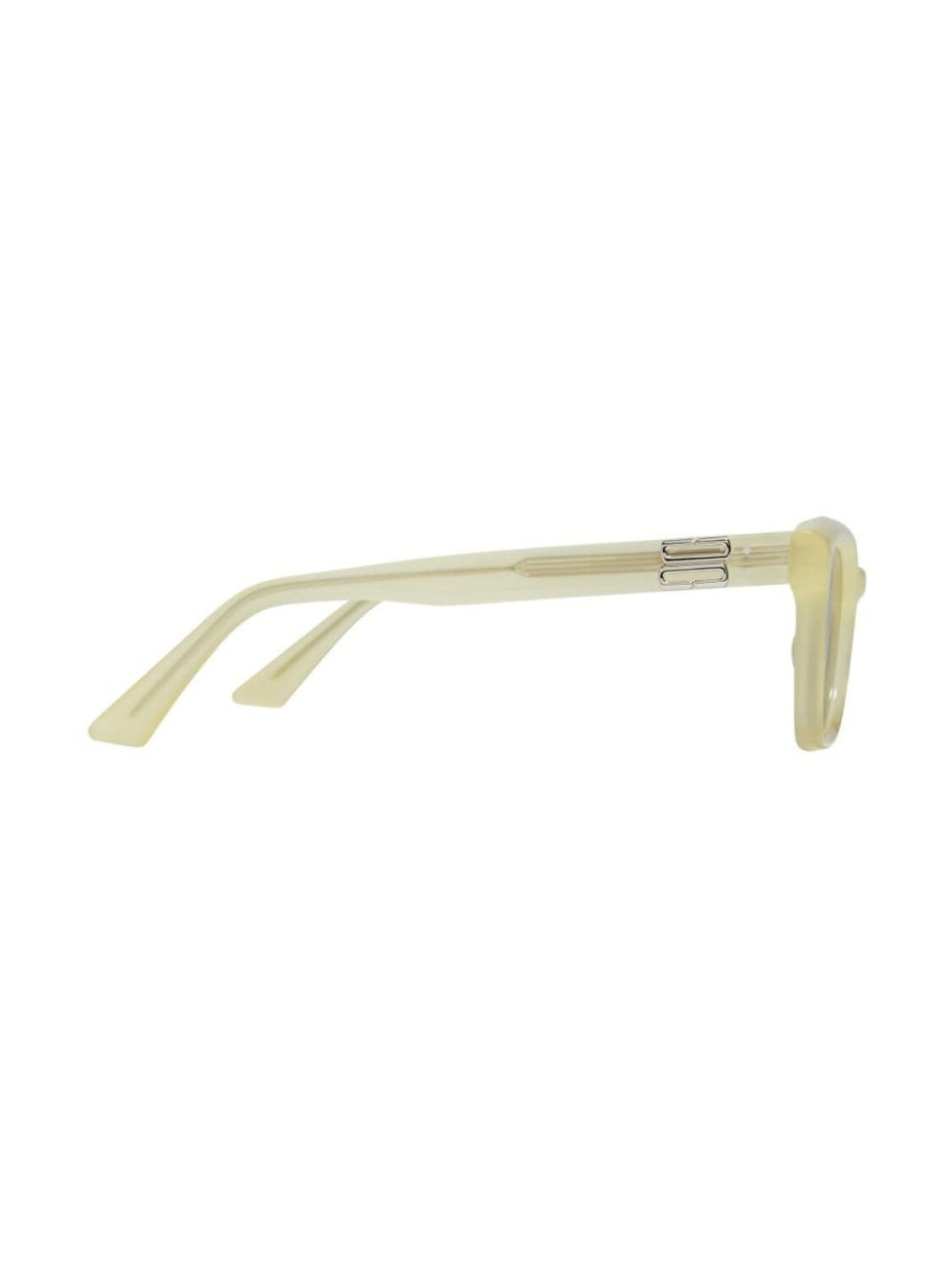 Кремово-белый, квадратная оправа, серые линзы, тисненый логотип сбоку, прямые дужки, дужки с закругленными концами и линзы с защитой от ультрафиолета. В комплект входит защитный чехол для очков.