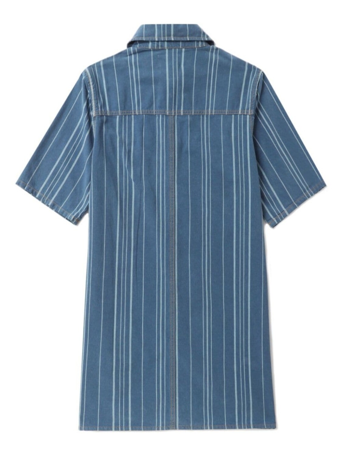 Синий, органический хлопок, деним, узор в вертикальную полоску, плоский заостренный воротник, застежка на пуговицах спереди, короткие рукава, два нагрудных кармана с клапанами, длина до бедер и прямой подол. Этот товар как минимум на 50% состоит из органических материалов. Узнать больше о том, какие товары получают отметку «Ответственный выбор», можно из материала «Как мы оцениваем экологичность и этичность».