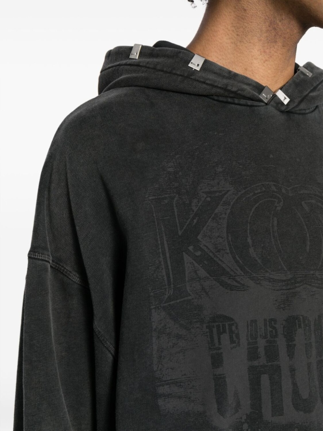 Темно-серый, хлопок, ткань джерси, графичный принт спереди, классический капюшон, длинные рукава, рукава с узкими манжетами, карман-муфта и прямой подол.