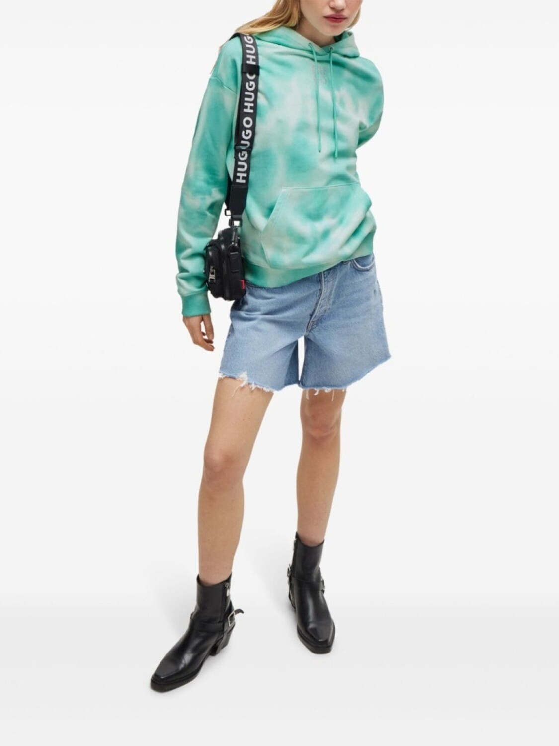 Махровое худи с принтом тай-дай HUGO, синий