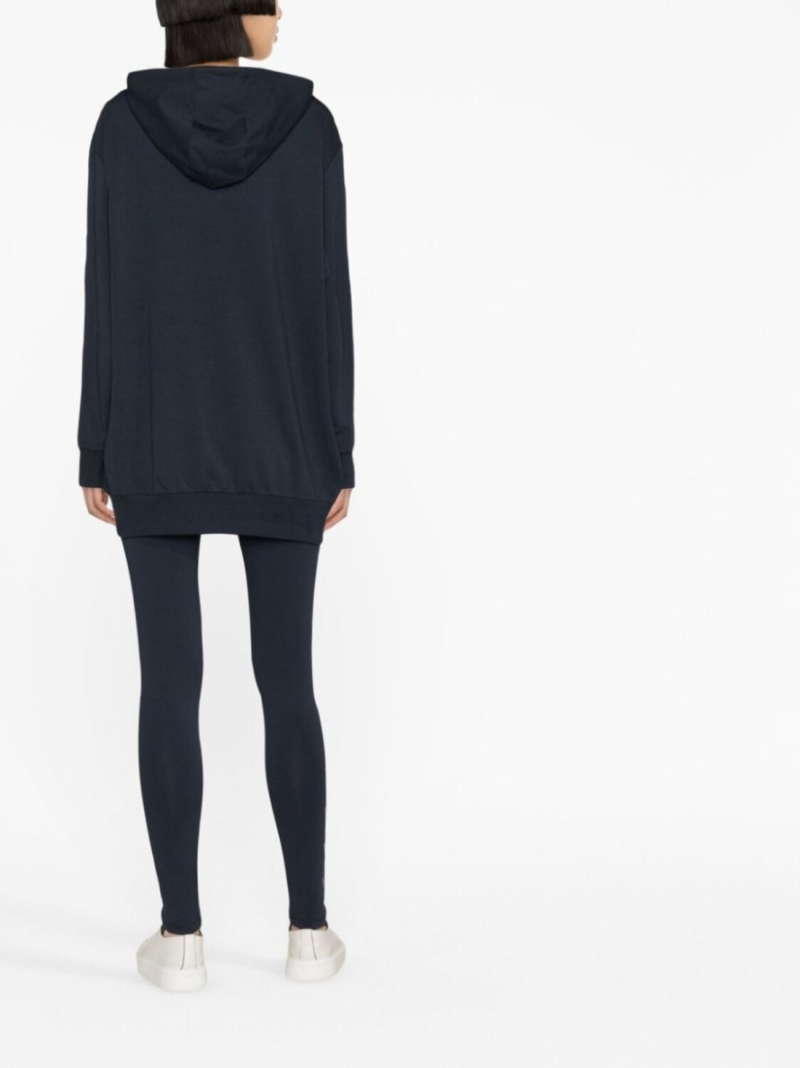 Темно-синий, смесовый хлопок, логотип спереди, затягивающийся на шнурок капюшон и длинные рукава.