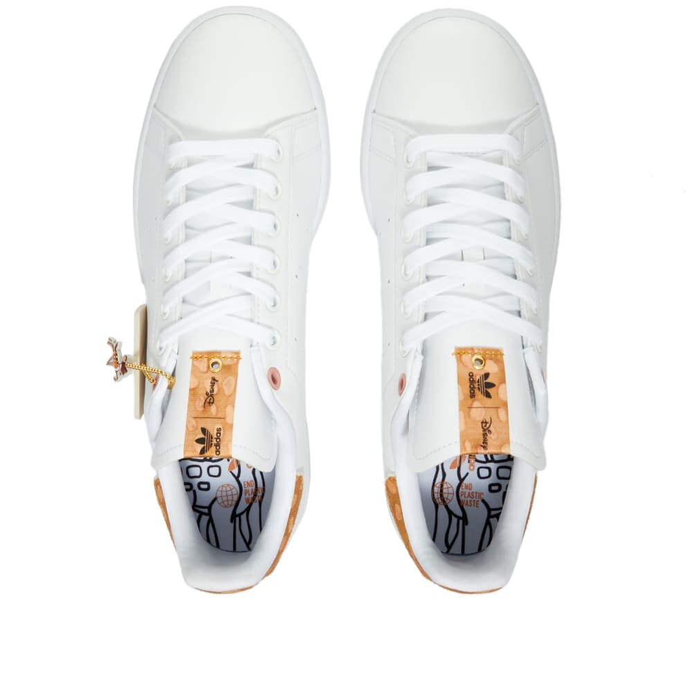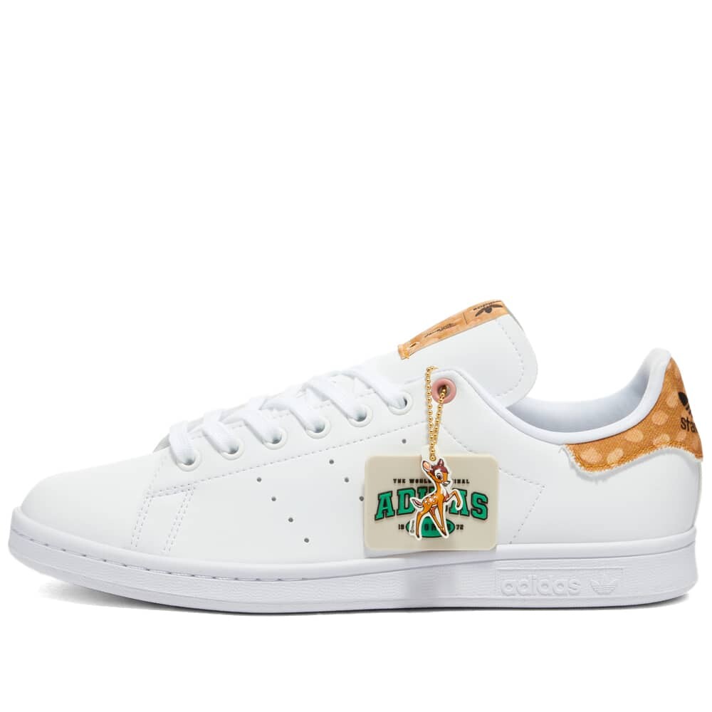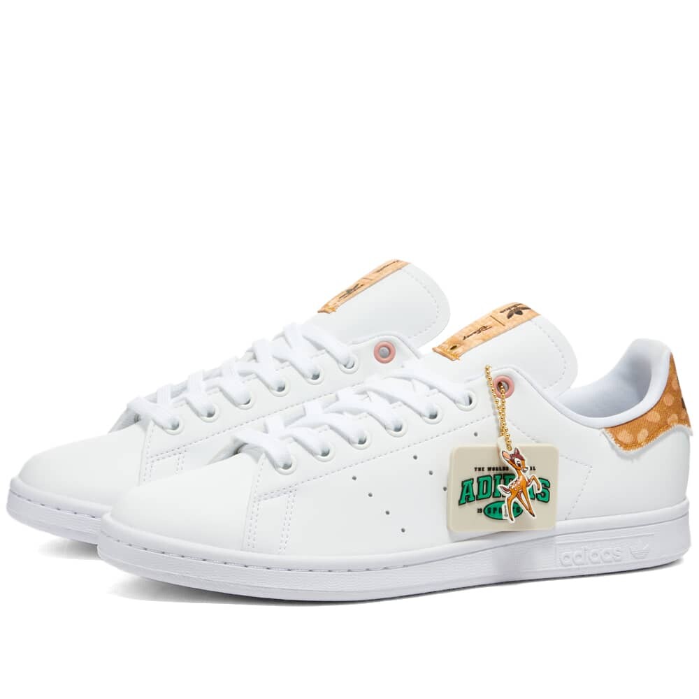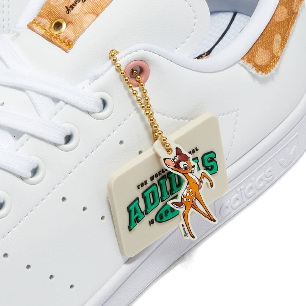 adidas объединяется с любимой Диснеем Бэмби, чтобы создать эту версию своих фирменных кроссовок Stan Smith, вдохновленную лесом. Созданные в память о Ренне Скотт — первой женщине-иллюстраторе в диснеевском фильме — эта приятная на ощупь пара обуви изготовлена из безопасной для животных синтетической кожи, частично переработанной, и украшена коричневыми меховыми пятнами Бэмби на язычке и пятке.