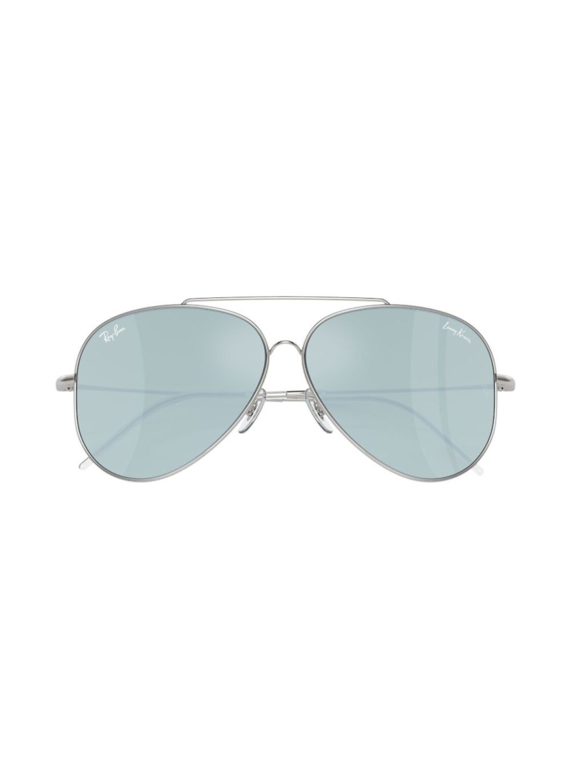 Серебристый, синие линзы, защита от ультрафиолетового излучения, логотип спереди, оправа Ray-Ban Aviator, завышенный мост, носоупоры, прямые дужки, дужки с закругленными концами, В комплект входит защитный чехол для очков.