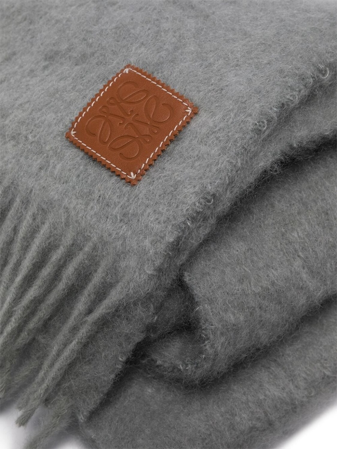 Шарф с бахромой и нашивкой Anagram LOEWE, серый