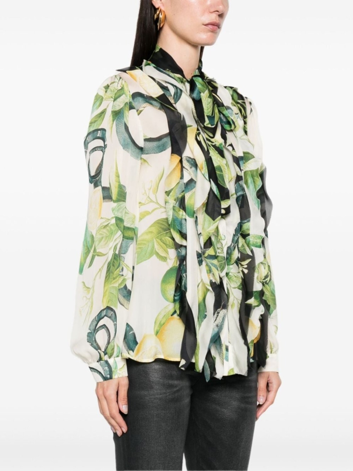 Шелковая рубашка с принтом Lemon Roberto Cavalli, бежевый 105 353₽