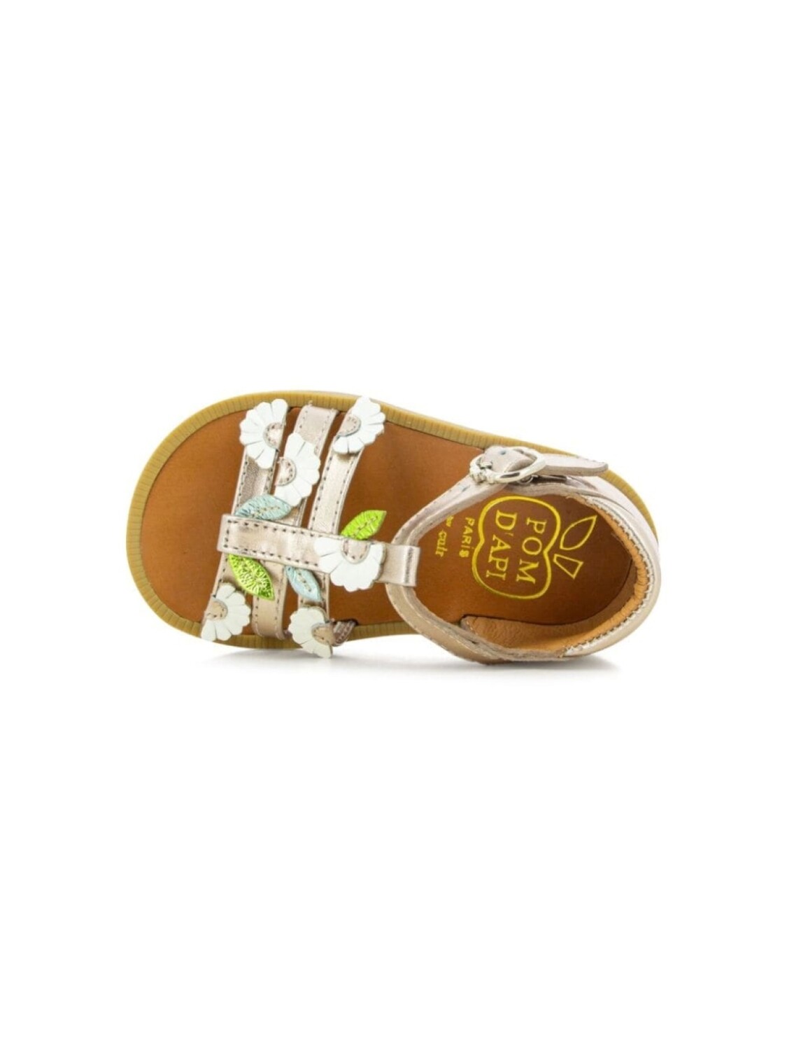 Кожаные сандалии с цветочным принтом Pom D'api, золотистый