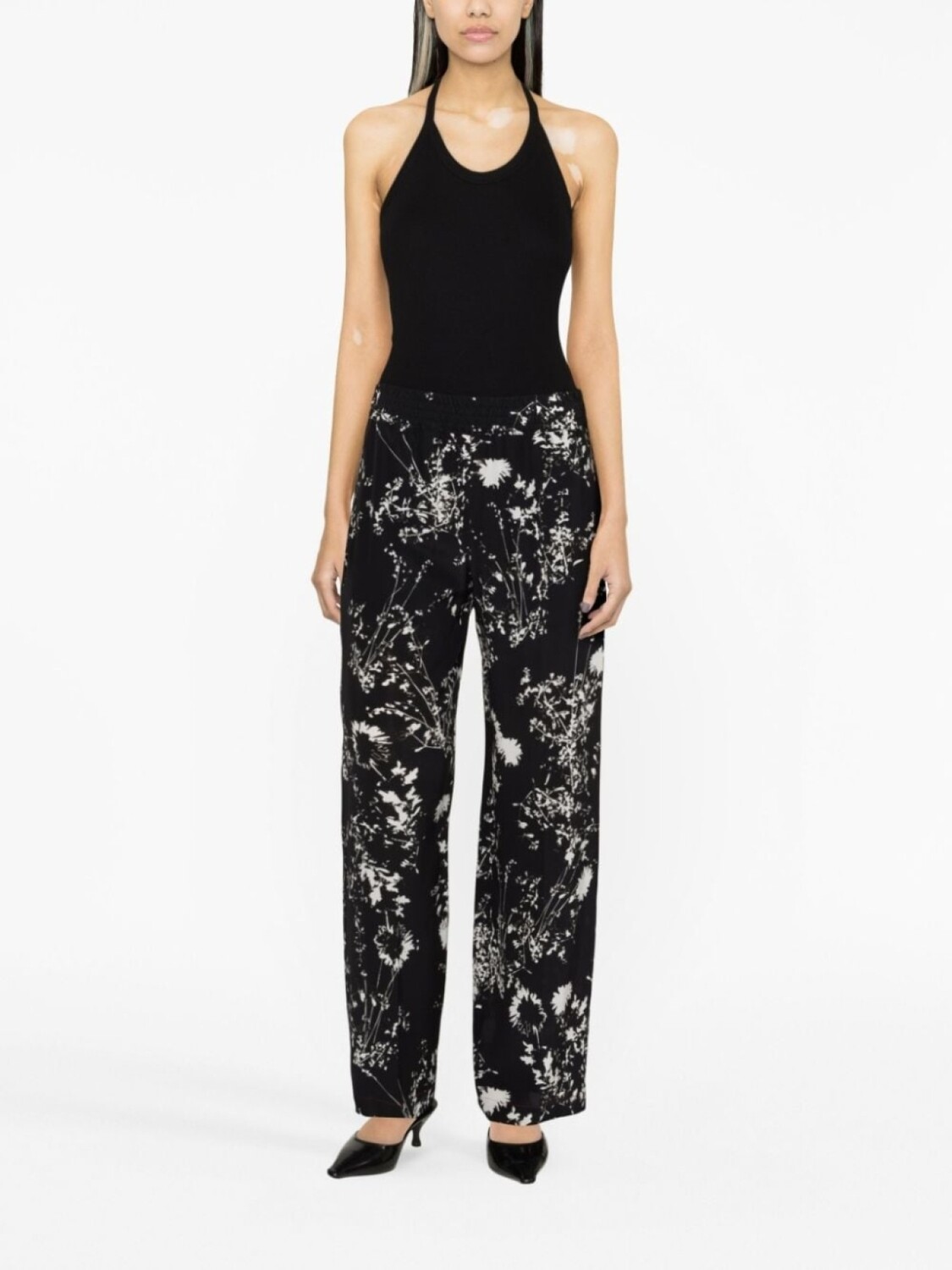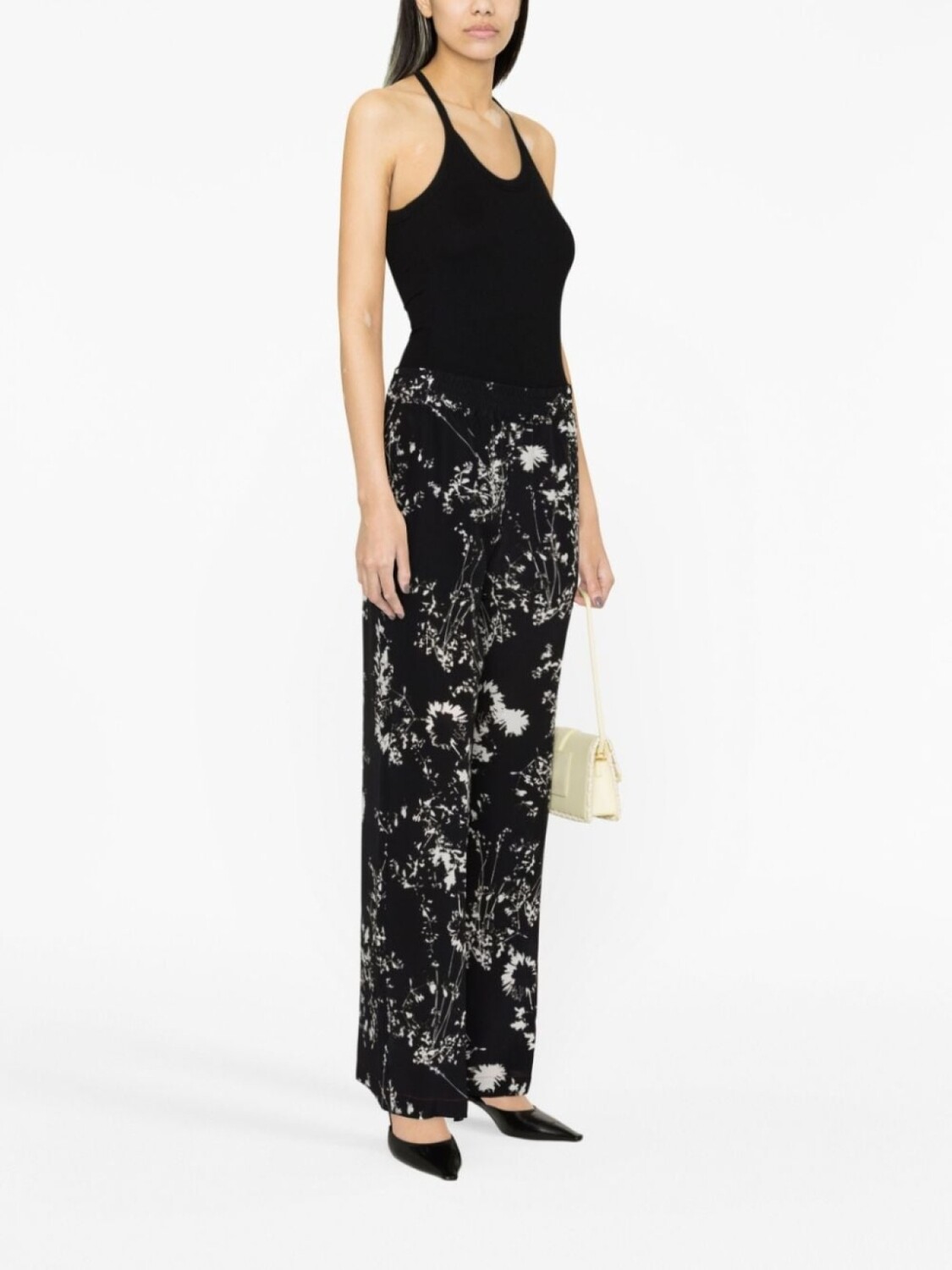 Шелковые брюки с цветочным принтом Victoria Beckham, черный