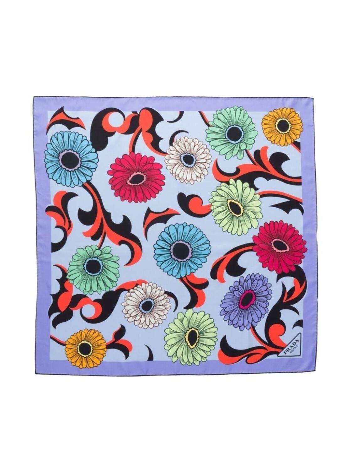 Шелковый платок с цветочным принтом Prada, синий 58 759₽