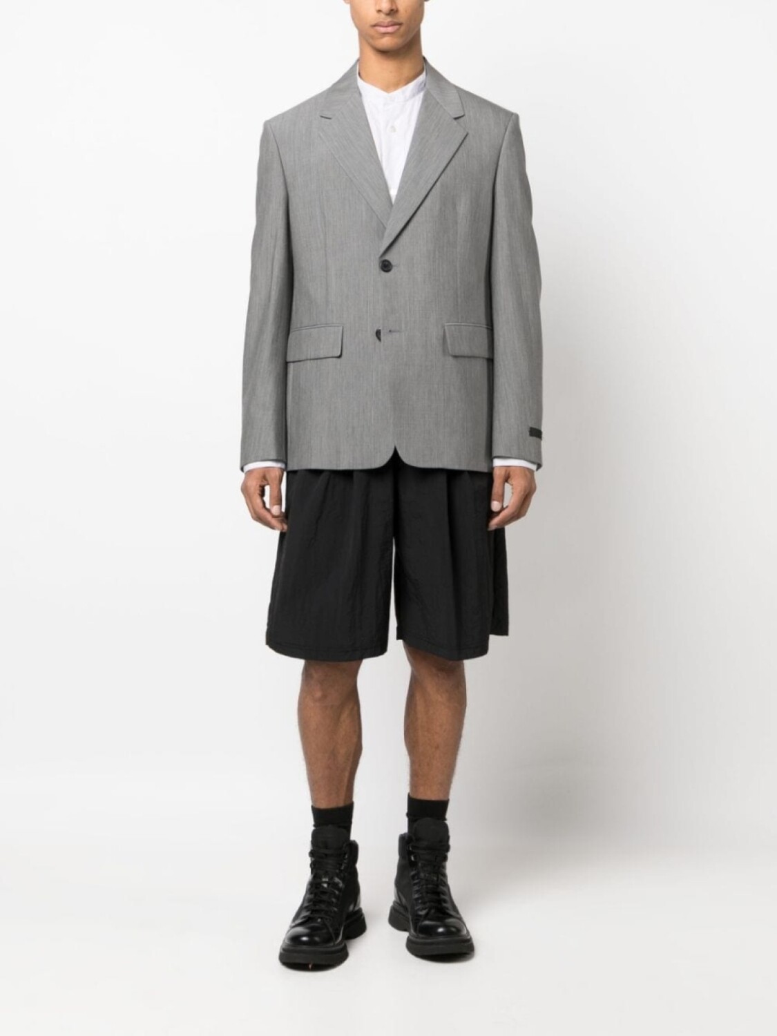 Однобортный пиджак из смесовой шерсти Prada, серый
