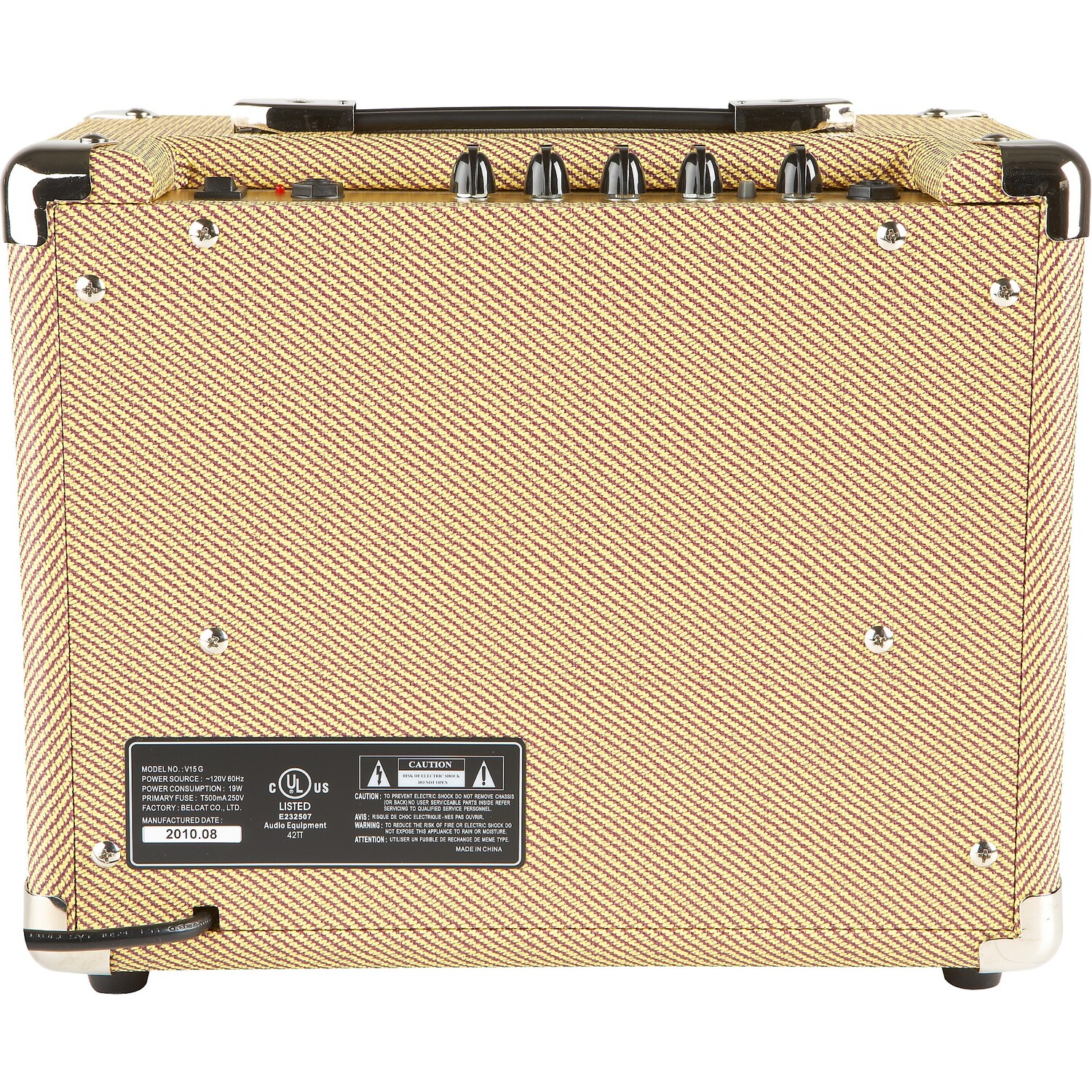 Спецификации: V15G 15 Вт 1x6,5 Характеристики гитарного комбоусилителя: - Максимальная выходная мощность: 15 Вт.