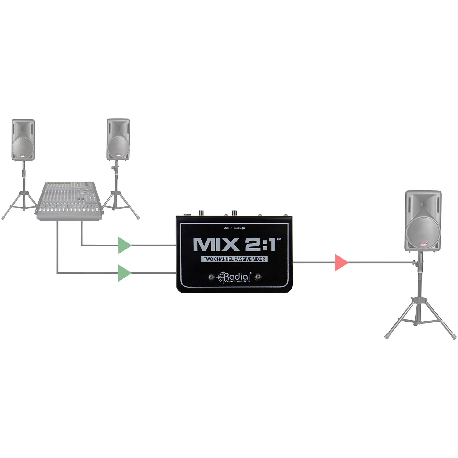 Суммируйте стереовыходы до моно или микшируйте любые два сигнала вместе. MIX 2:1 — это простой, но очень полезный микшер, который пассивно суммирует два аудиоканала в один. Это позволяет вам легко суммировать стереовыходы консоли, интерфейса записи или портативного устройства воспроизведения до моно или микшировать любые два сигнала вместе и балансировать их относительные входные уровни.