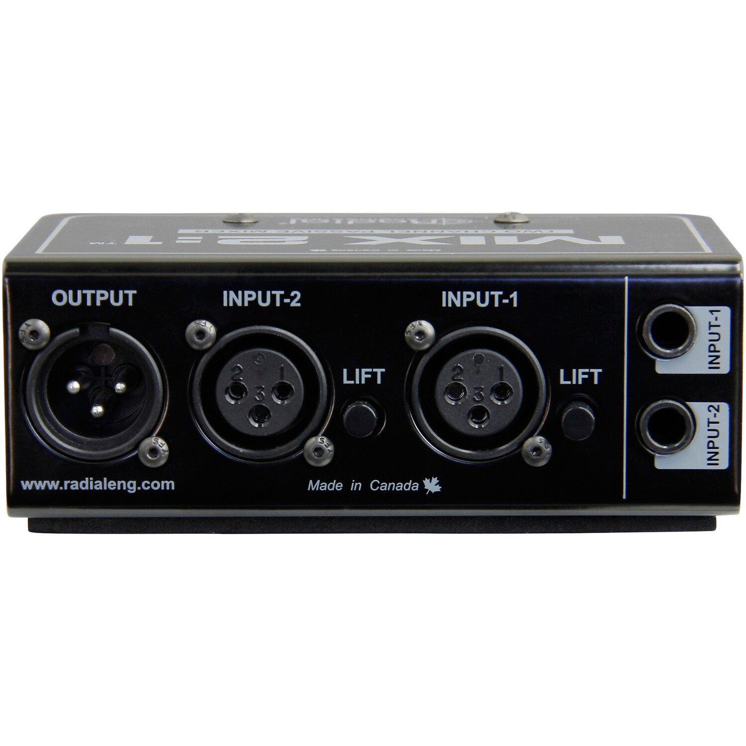 На входах MIX 2:1, доступны разъемы ¼ дюйма TRS и XLR, с переключателями заземления для устранения шума и шума в контурах заземления и обеспечения бесшумной работы. Каждый вход можно индивидуально включать или отключать, что позволяет прослушивать любой сигнал. перед суммированием обоих входов также имеется регулятор регулировки на каждом входе, поэтому, если вы подключаете два отдельных монофонических источника, например, выходы двух микрофонных предусилителей, каждый из них можно ослабить по мере необходимости, чтобы их уровни на обоих выходах были одинаковыми. элементы управления можно полностью обойти, суммируя входы 1 и 2 одинаково и предотвращая случайную или нежелательную регулировку уровня. MIX 2:1 имеет переворот на 180° на входе 2, чтобы помочь решить проблемы с подавлением частоты из-за отсутствия входов. После того, как оба сигнала пассивно суммируются, они поступают на один выход XLR, который можно подключить к активному динамику, входу консоли или интерфейсу записи.