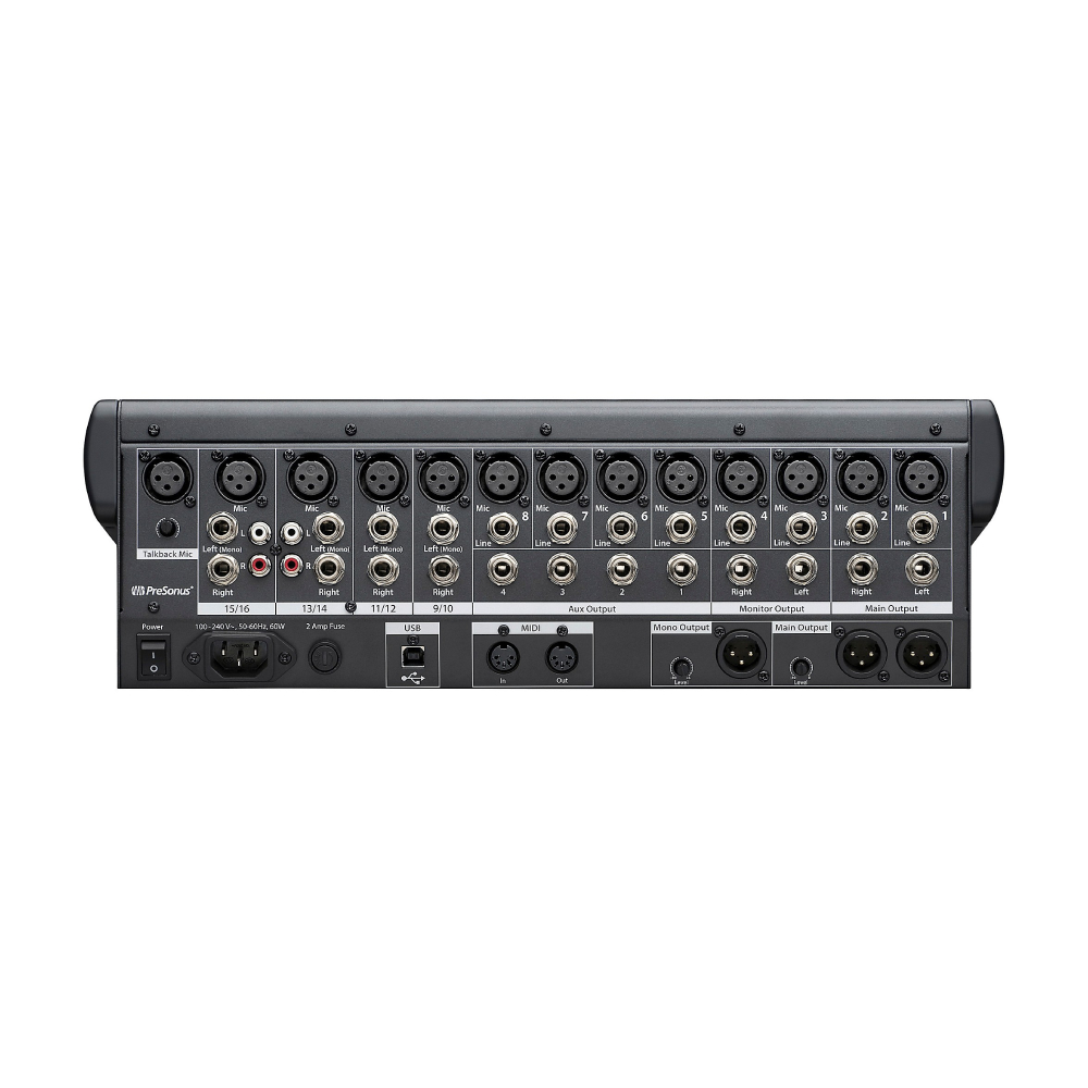 Идеальная программа StudioLive для многих ситуаций. StudioLive 16.0.2 USB — отличный выбор для небольших церквей, школ, групп и клубов, а также для небольшой студии с ограниченным бюджетом. Он имеет 16 канальных входов, 4 из них стереоканалы и 12 с микрофонными предусилителями XMAX; встроенный интерфейс USB 2.0 18x16; обширная обработка сигнала на каждом канале и шине; 4 шины AUX; расширенный учет; Сохранение/вызов сцены и настроек; MIDI-управление и многое другое. При этом он невероятно легкий, монтируется в стойку, работает во многом как аналоговая консоль и обеспечивает превосходное качество звука. Он поставляется с программным обеспечением управления PreSonus UC Surface, программным обеспечением для записи Capture, приложением управления AUX QMix-UC и цифровой рабочей станцией Studio One Artist. Функции