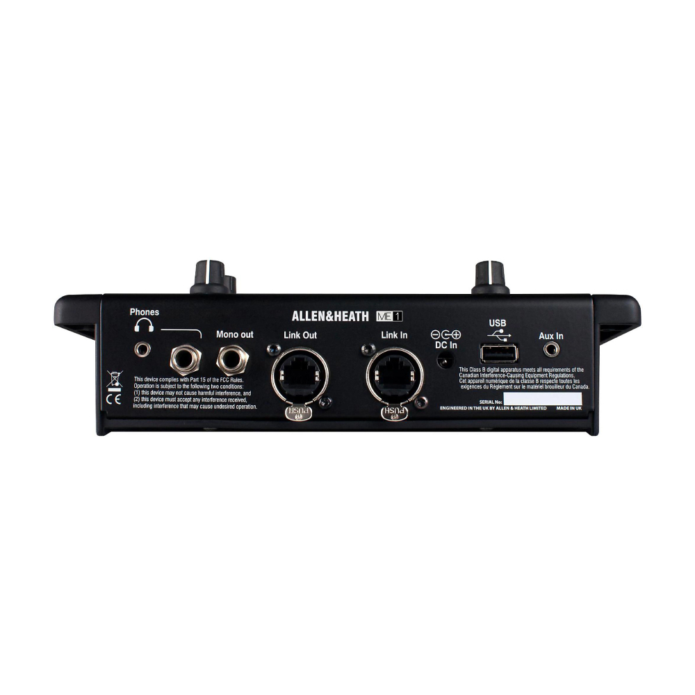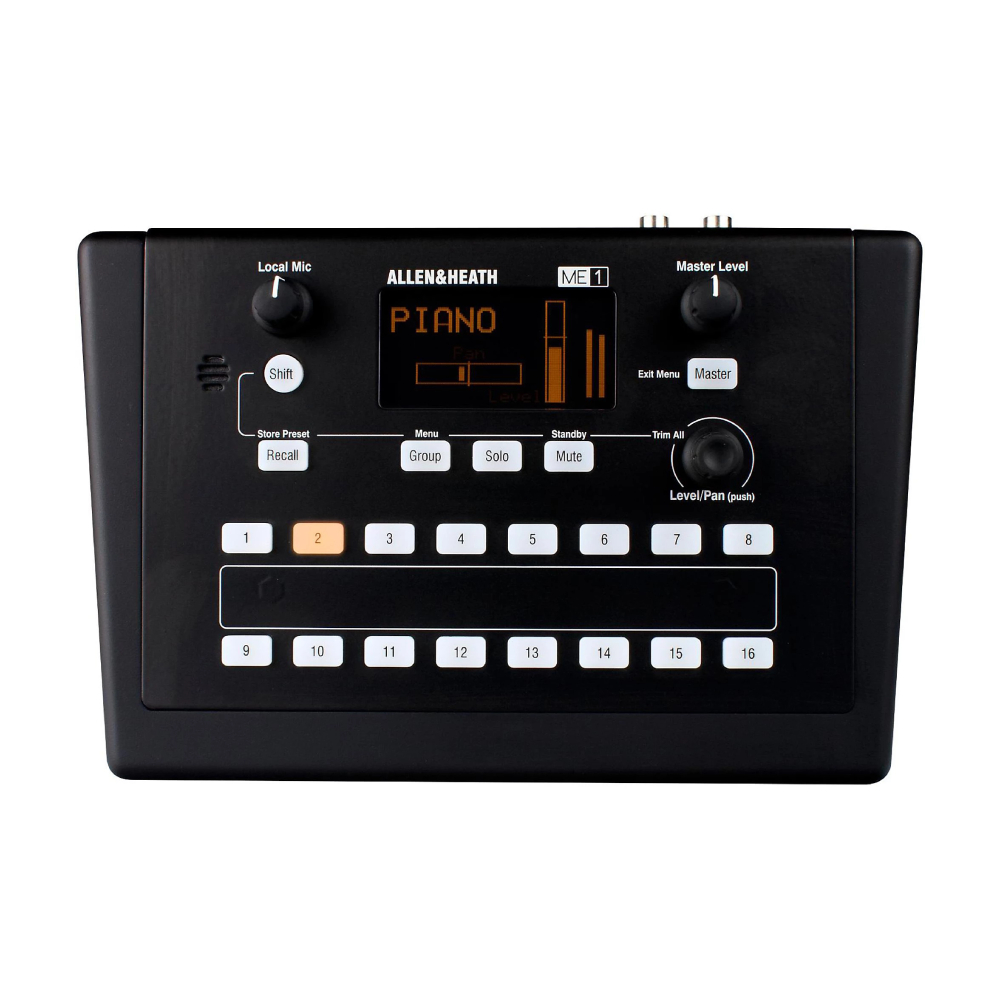 ME-1 является краеугольным камнем персональной микшерной системы ME и готов к использованию с Allen & Heath. Цифровые микшеры серий dLive, iLive, GLD и Qu. ME-1 дополняется концентратором ME-U, который открывает преимущества ME для пользователей других профессиональных цифровых микшеров через Dante, EtherSound или MADI. ME-1 также имеет режим совместимости с Aviom для использования с системами Aviom Pro16.