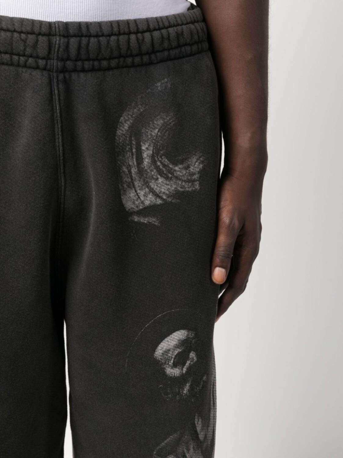 Черный, хлопок, графичный принт спереди, эластичный пояс и два кармана по бокам.