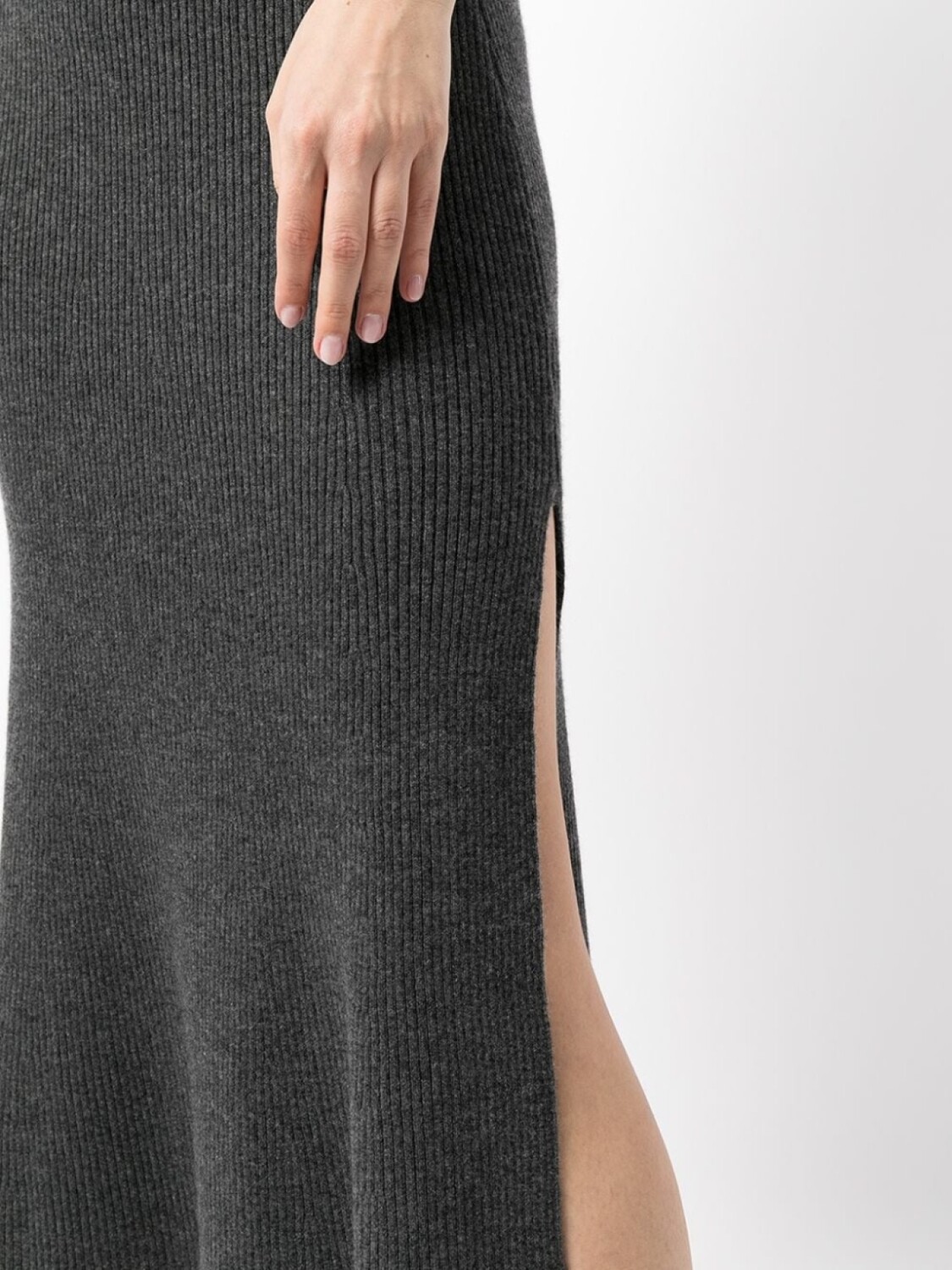 Тонкая вязка, А-образный силуэт, длина миди и боковой разрез. Цвет: зеленый.