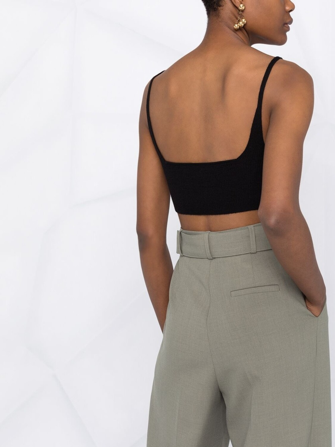 Вязаный дизайн, тонкие бретели и без застежки. Цвет: черный.