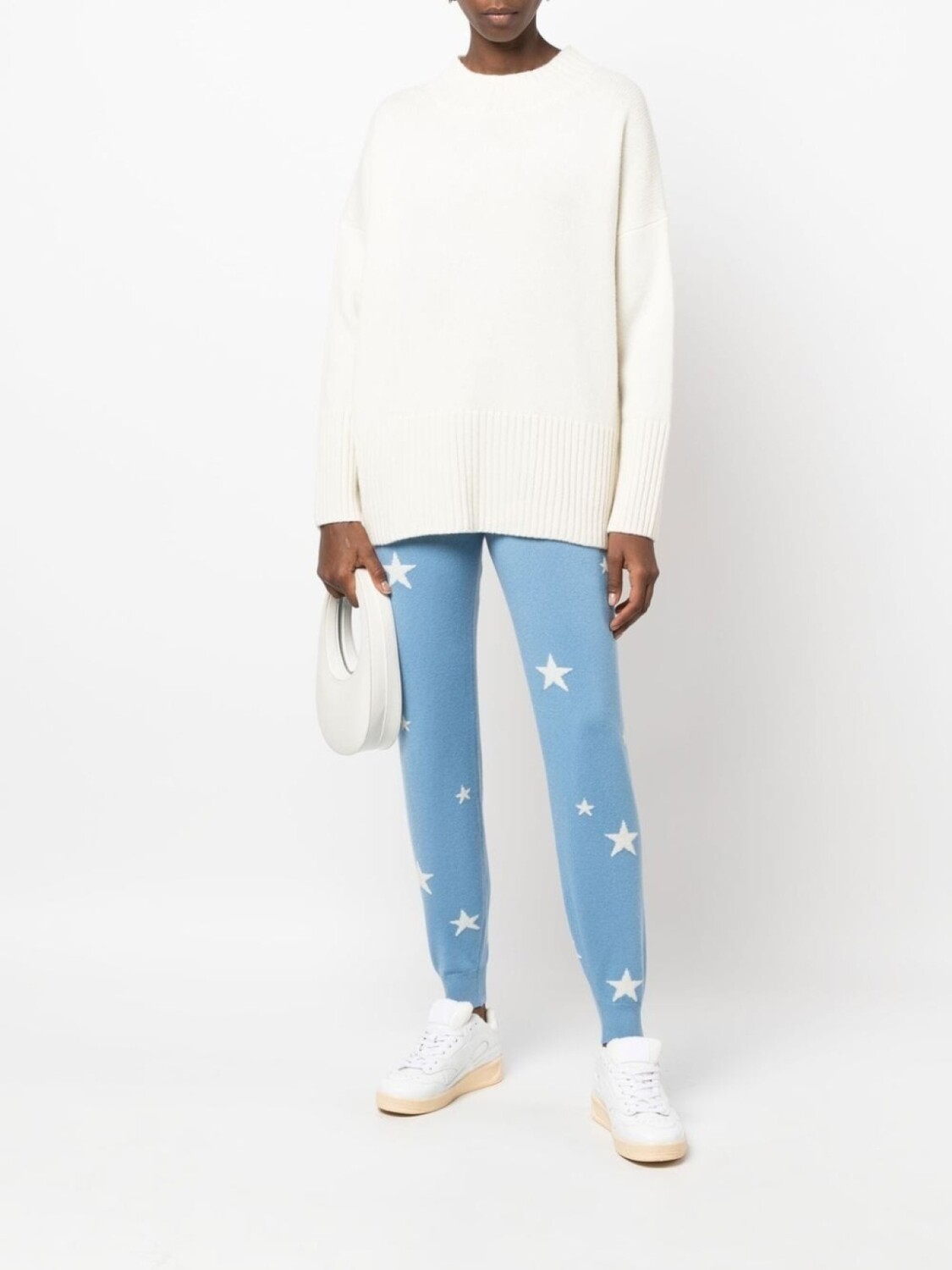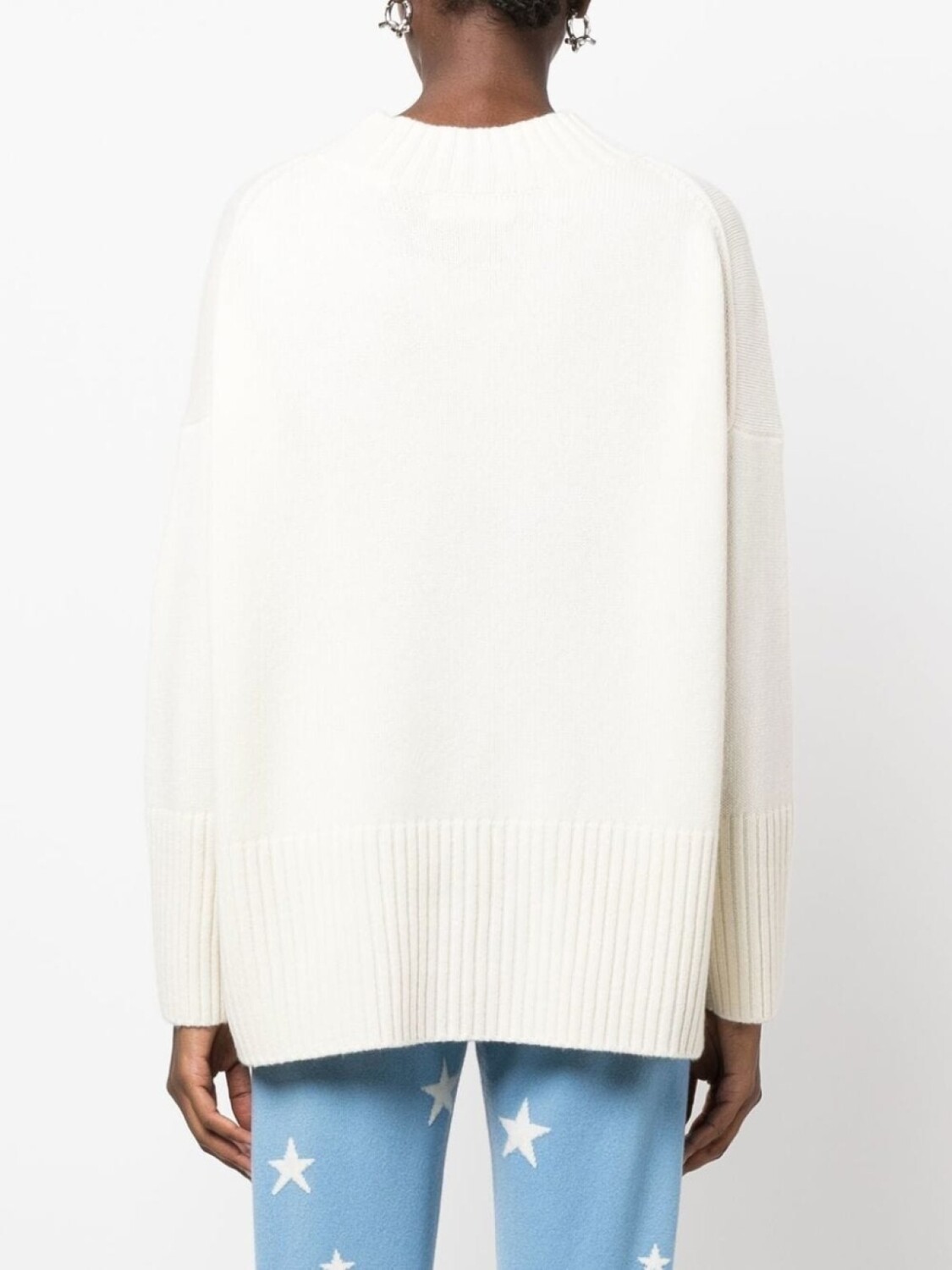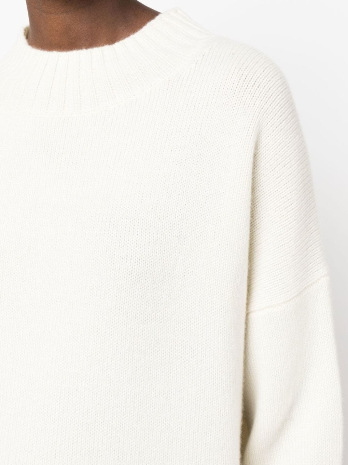 Кремово-белый, кашемир, круглый вырез и длинные рукава.