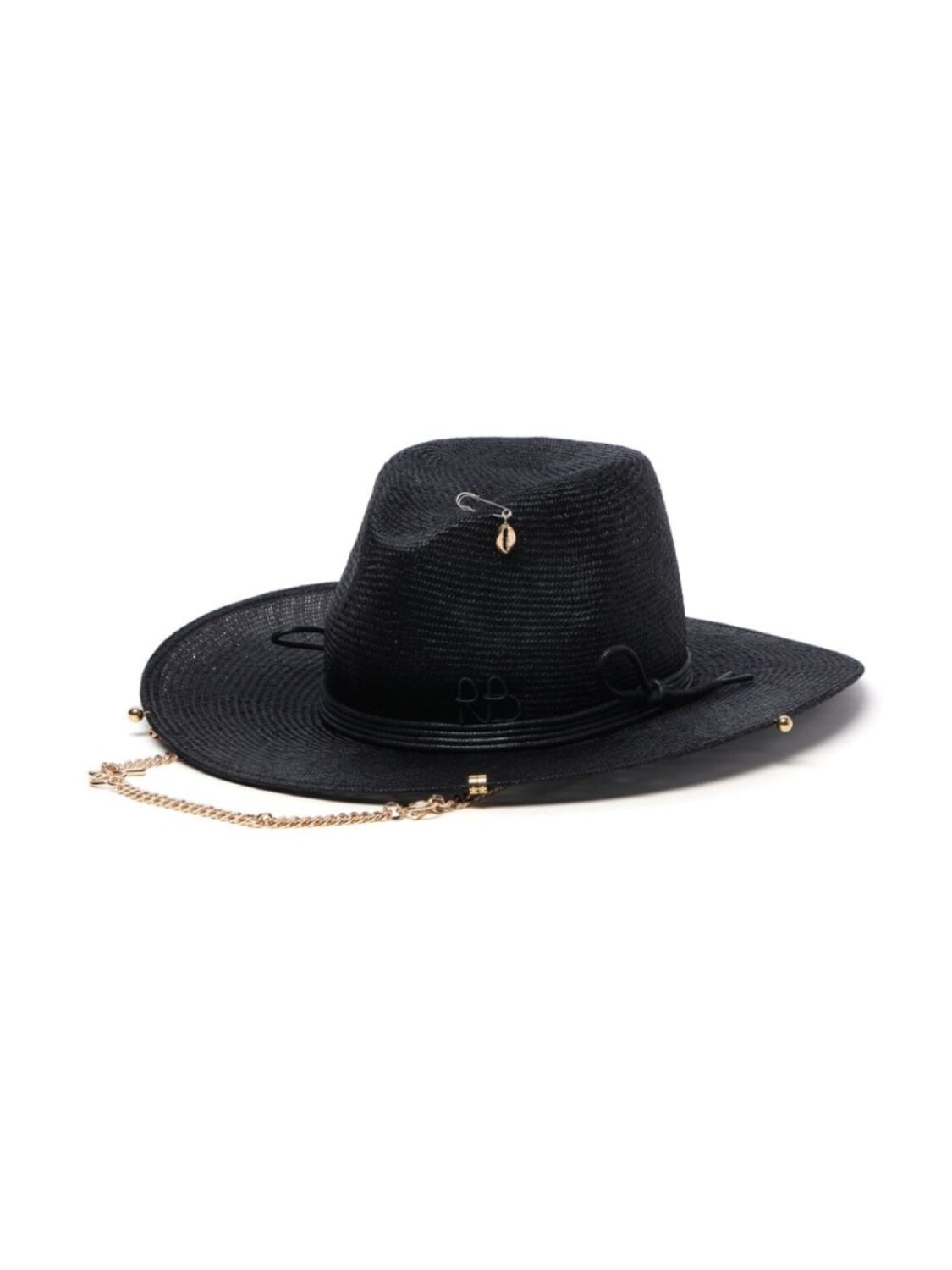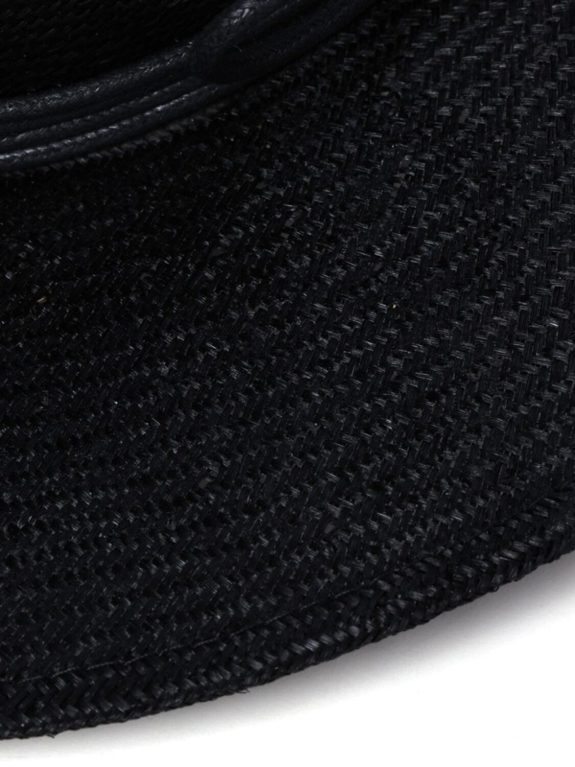 Черный, солома, переплетенный дизайн, вышитый логотип, подвеска, широкие поля