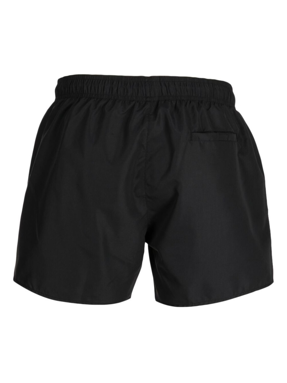 Черный, металлический логотип, кулиска, эластичный пояс и длина до бедер.